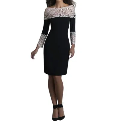 Off The Shoulders Appliquéd Cocktail Dress In Black/beige In Multi