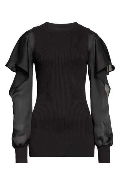 Abe honed her skills working for Rei Kawakubo and Junya Watanabe of Comme des Garçons for ten years, before starting Sacai in 1998. Aiming to make clothing suitable for any situation, Abe melds and transforms familiar women’s knitwear, jackets, dresses, trousers, and blouses into novel and challenging design hybrids that interest visually in 360 degrees. Ruffles, patchwork, and paneling add feminine yet intellectual flourishes to Sacai’s innovative separates.