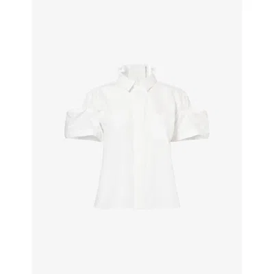 Abe honed her skills working for Rei Kawakubo and Junya Watanabe of Comme des Garçons for ten years, before starting Sacai in 1998. Aiming to make clothing suitable for any situation, Abe melds and transforms familiar women’s knitwear, jackets, dresses, trousers, and blouses into novel and challenging design hybrids that interest visually in 360 degrees. Ruffles, patchwork, and paneling add feminine yet intellectual flourishes to Sacai’s innovative separates.