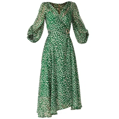 Women's Green / White Cloudland Wrap Dress In Green White Spot In Multi