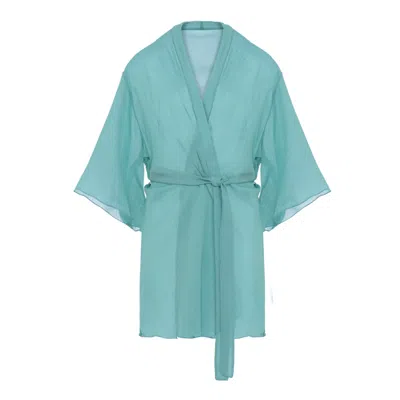 Women's Green / Blue Silk Kimono Robe - Turquoise - Firouzeh In Green/blue