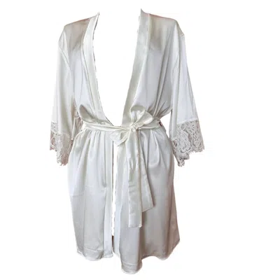 Women's Neutrals / White Satin Silk & Cotton Lace Kimono Robe - Ivory - Ayda