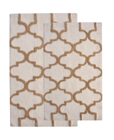 Quatrefoil Non-skid Cotton 2-pc. Bath Rug Set In White,beige