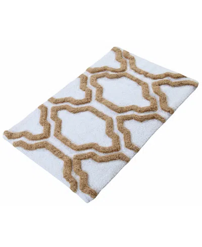 Quatrefoil Non-skid Cotton Bath Rug, 24" X 36" In White,beige