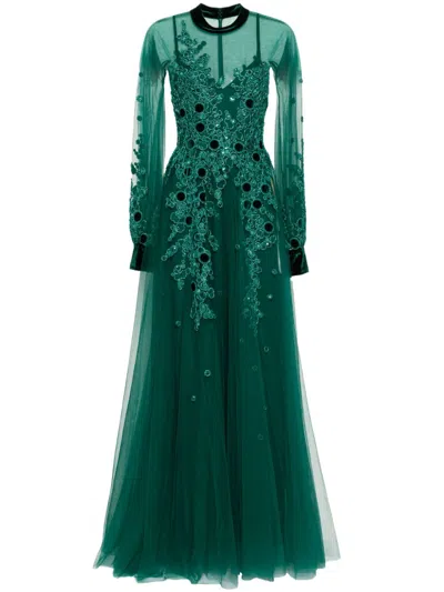 Embroidered Tulle Dress In Green