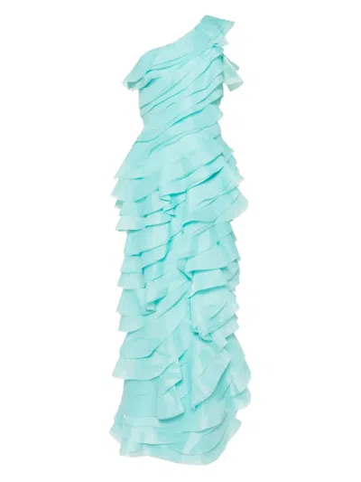 Layered Organza Long Dress In Blue