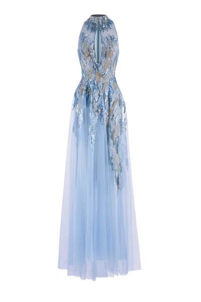 Beaded Tulle Dress In Blue