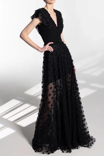 Beaded Tulle Dress With Polka Dots In Black