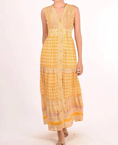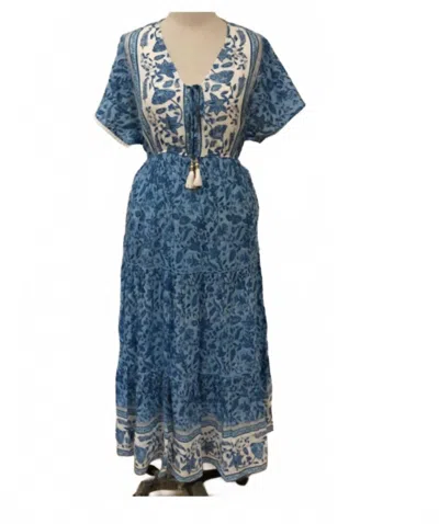 Katherine Cotton Silk V-neck Maxi Dress In Blue In Multi