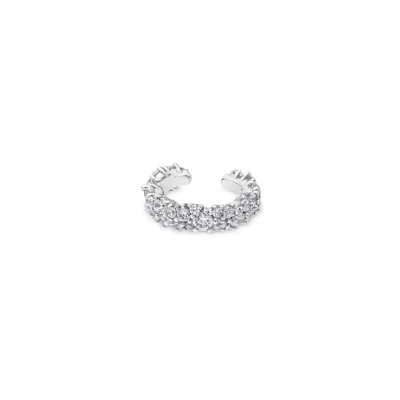 Women's White / Silver Edge Ear Cuff With Man Made Cz Diamond Stimulant In Sterling Silver In Multi
