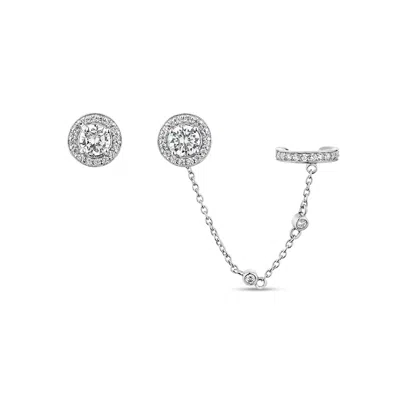 Women's White / Silver Aliven Stud & Earcuff Set With Man Made White Diamonds In Sterling Silver In Multi