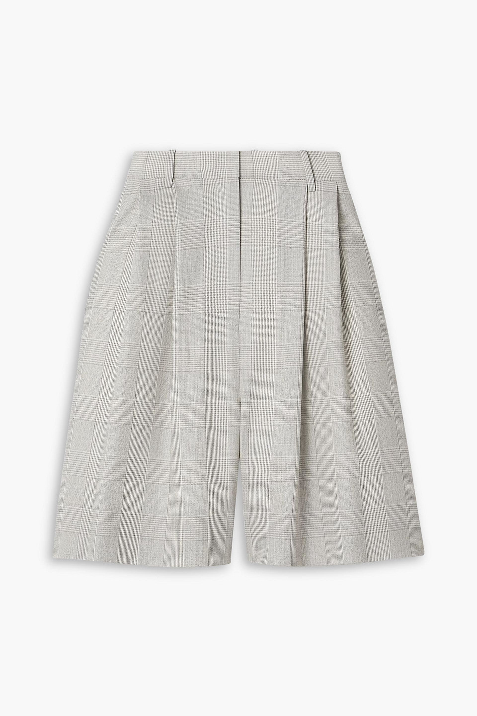 Lenka Pleated Checked Wool Shorts In Gray