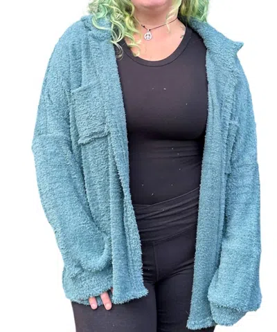 Malia Plush Oversize Shacket In Teal In Blue