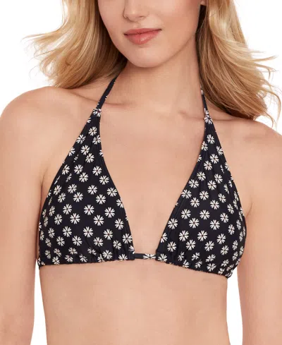 Juniors' Daisy-print Triangle Bikini Top, Created For Macy's In Black Multi