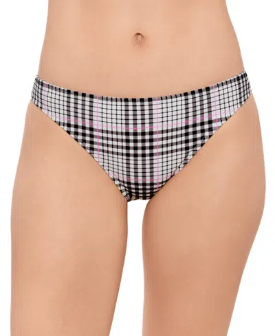 Juniors' Plaid Hipster Bikini Bottoms, Exclusively At Macy's In Black,white