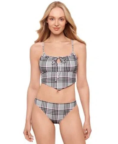 Salt Cove Juniors Plaid Tie Front Hankini Top Hipster Bottoms Exclusively At Macys In Black,white