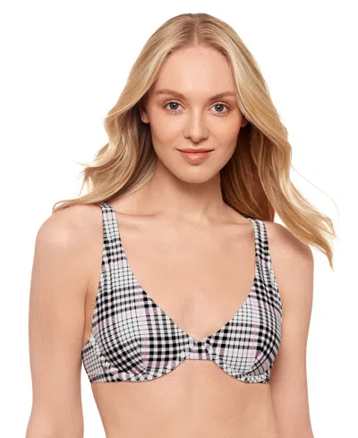 Juniors' Plaid Underwire Bikini Top, Exclusively At Macy's In Black,white