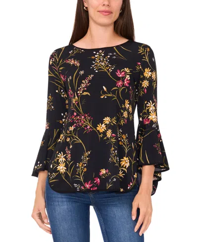 Women's Printed Crewneck 3/4-bell-sleeve Blouse In Multi