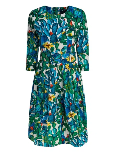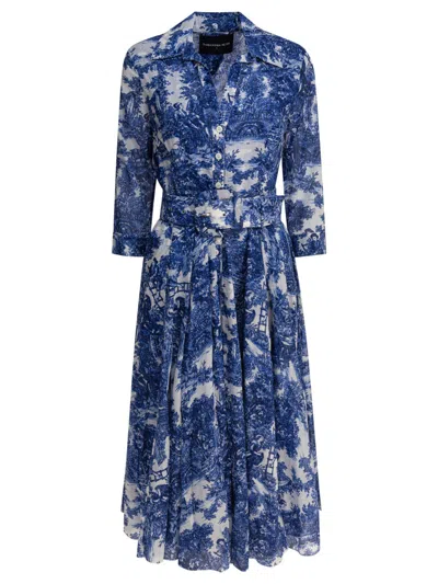 Audrey Elephant-print Pleated Midi Dress In Blue