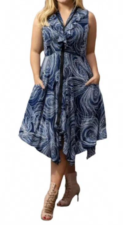 Double Wired Collar Cross Tie Bubble Dress In Aquaswirl In Blue