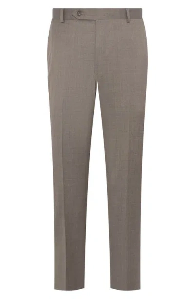 Flat Front Straight Leg Wool Dress Pants In Taupe