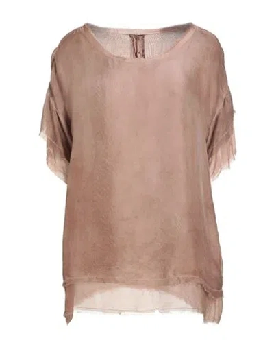 Woman Top Mustard Size L Viscose, Silk In Brown