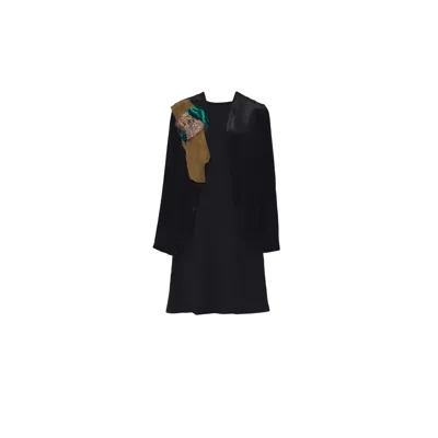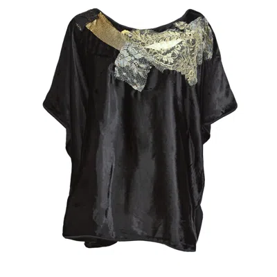 Women's Black / Gold / Green Saniya Suede Velvet Poncho In Multi