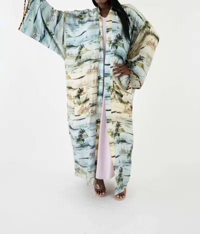 Beach Scene Silk Twill Kimono In Multi Pastel