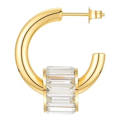 Women's White Fold Plated Stainless Steel C Shaped Diamond Baggette Earring