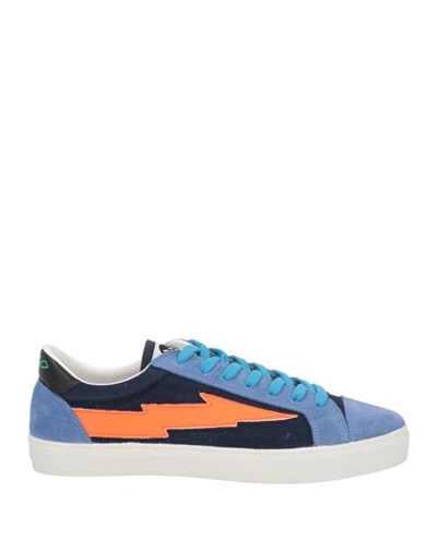 Man Sneakers Navy Blue Size 9.5 Soft Leather, Textile Fibers
