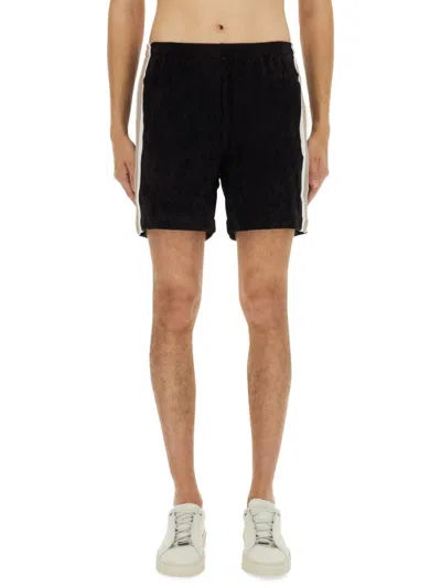 Relaxed Fit Black Shorts With Vertical Stripes