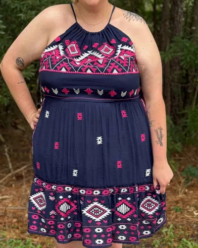 Paisley Embroidered Jumpsuit In Navy In Purple