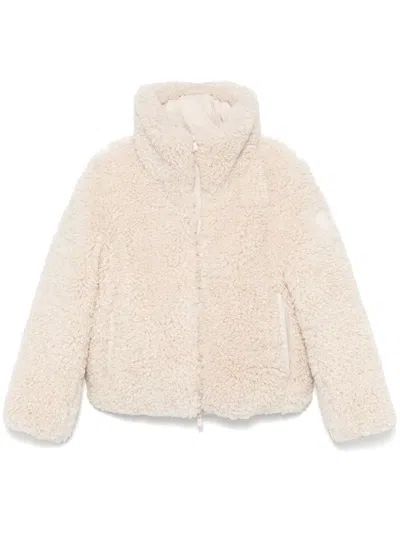 Down Jacket With Hood In Beige