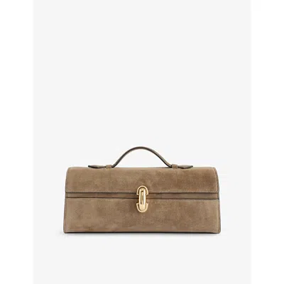 Womens Mink Slim Symmetry Pochette Suede Top-handle Bag In Brown
