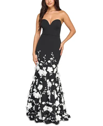 Juniors' 3d Floral-applique Mermaid Gown, Created For Macy's In Black,ivory