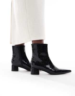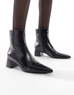 Bexley Pointed Toe Kitten Heel Ankle Boots In Black