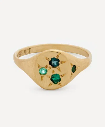 9ct Gold Neapolitan Green Multi-stone Signet Ring