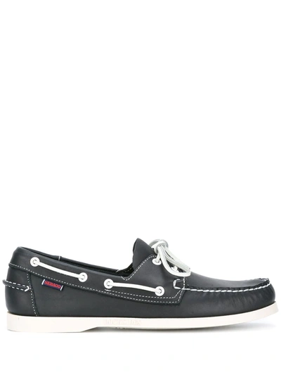 Leather Boat Loafers With Contrasting Stitching In Gray