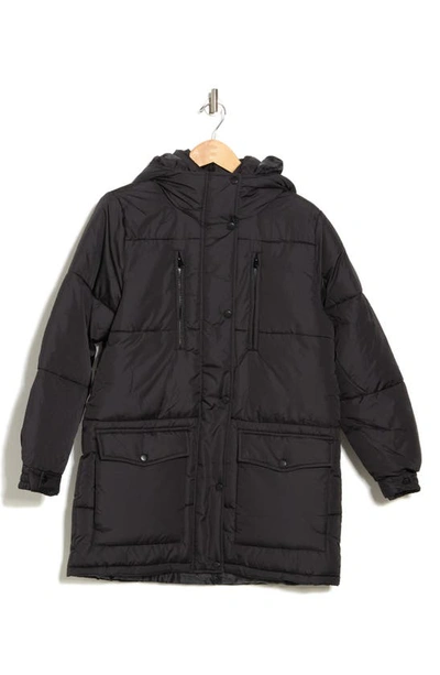 Water Resistant Hooded Long Puffer Jacket In Black