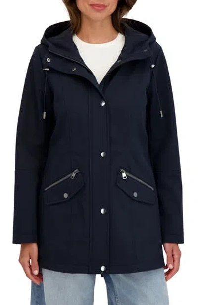 Water Resistant Hooded Softshell Coat In Blue