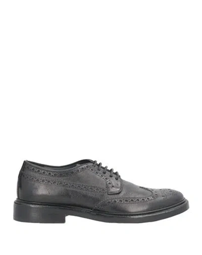 Man Lace-up Shoes Black Size 9 Leather In Multi