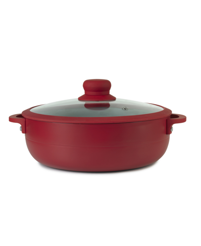 Aluminum 3.5 Qt Caldero With Silicone Rim Glass Lid And Silicone Handle Holder In Red
