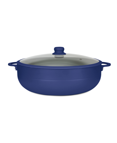 Aluminum 12 Qt Caldero With Silicone Rim Glass Lid And Silicone Handle Holder In Blue