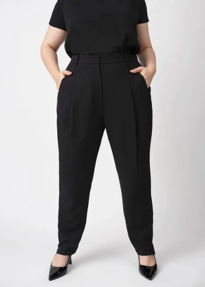 Stretch Crepe Pleated Plus Size Trouser In Jet Black