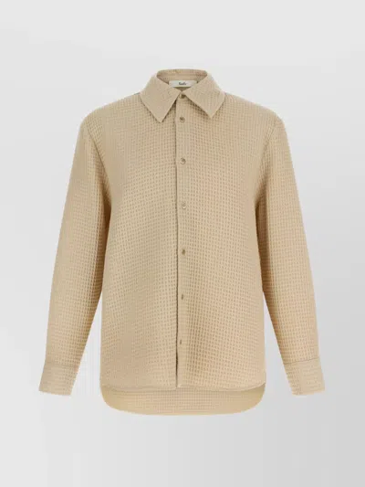 Relaxed Fit White Shirt With Classic Collar And Textured Finish