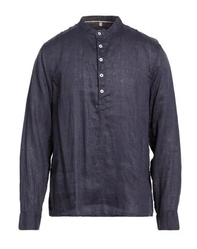Man Shirt Navy Size L Linen, Cotton In Blue