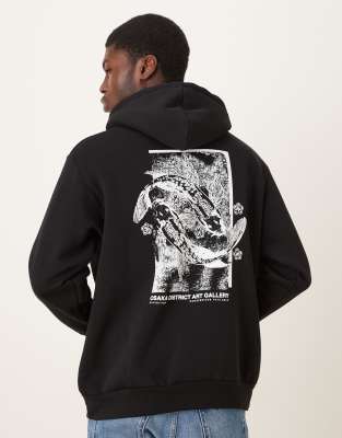Oversized Hoodie With Koy Fish Graphic Backprint In Gray