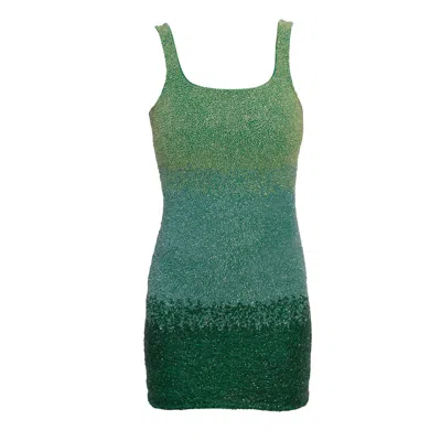 Women's Ombre Hand-beaded Embellished Mini Dress- Green In Multi