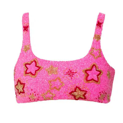 Women's Pink / Red Celeste Hand-beaded Embellished Bikini Top- Hotpink In Multi