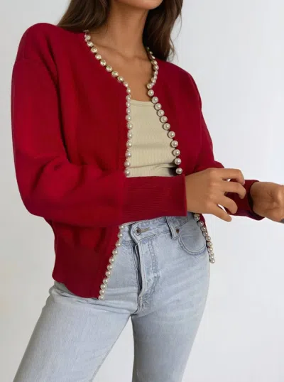 Charlotte Pearl Trim Cardigan In Red